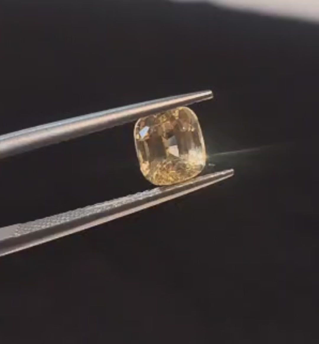 Heated Natural Yellow Sapphire Cushion Cut 1.04 Carats, Sri Lanka