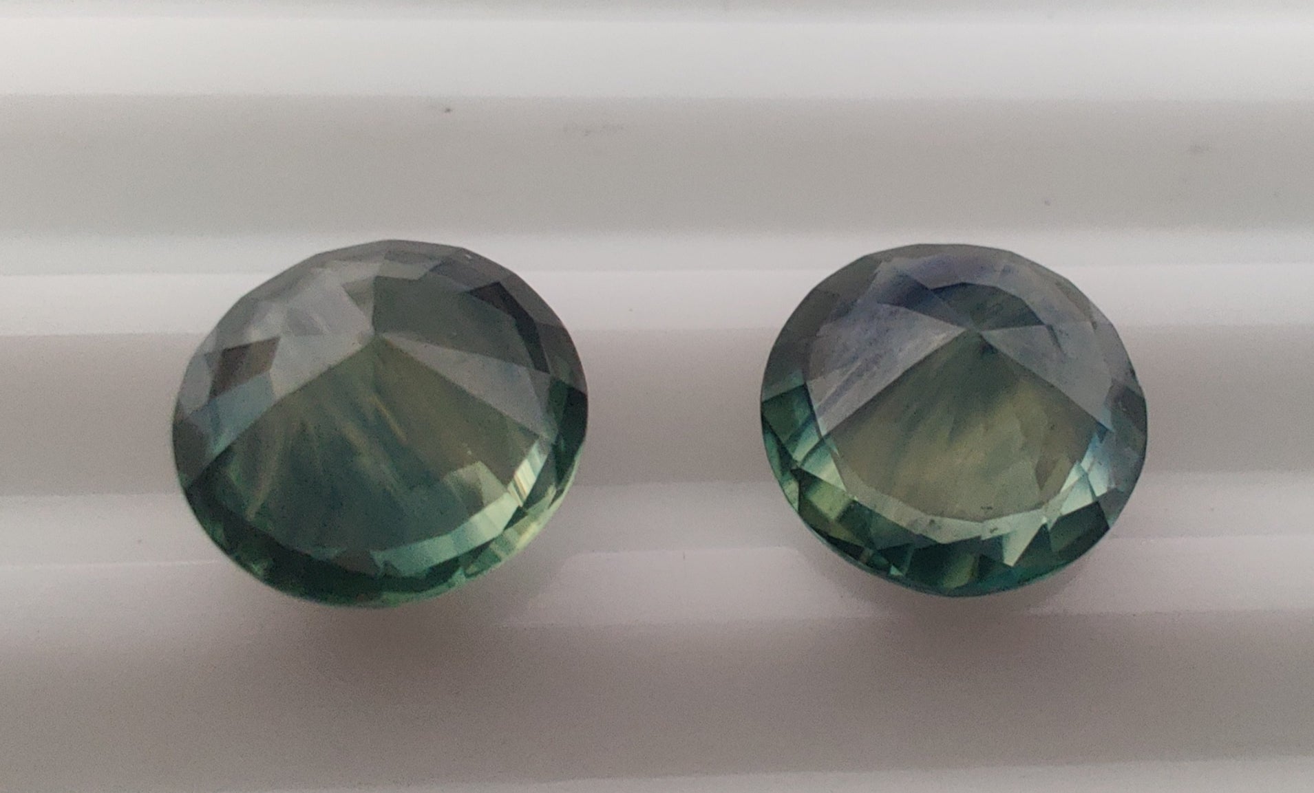 Heated Natural Green Blue Sapphire Pair Circle Cut 3.67 Carats, Sri Lanka